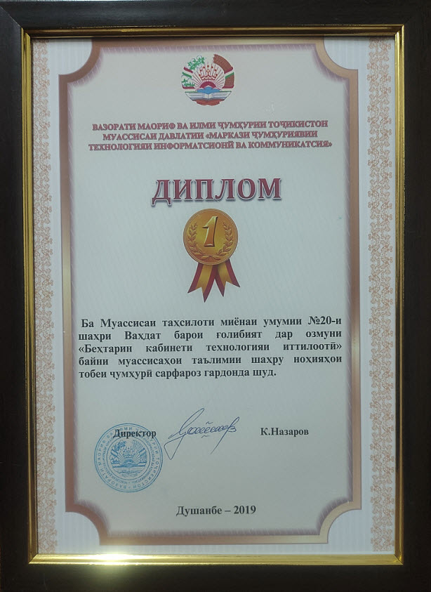 Маълумоти мухтасар дар бораи МТМУ №20 Муассисаи таҳсилоти миёнаи умумии №20 ба номи Изатулло Гулов таъсис ёфтааст. Соли 2014 дар ин муассиса бинои нав барои 640-нафар хонанда дар як баст, ки зиёда аз 32 кабинету синфхона ва як толори варзиши, як ошхона ва як маҷлисгоҳ иборат мебошад сохта ба истифода дода шудааст. |